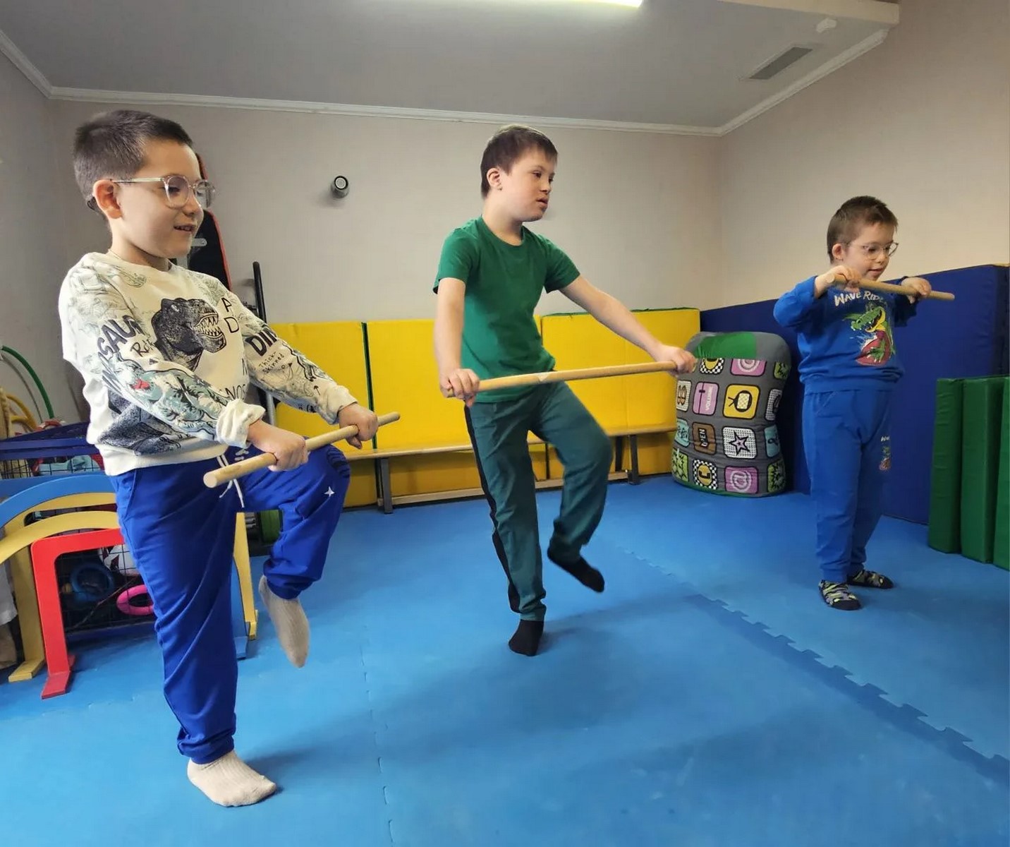 В нашем центре активно продолжаются занятия, направленные на всестороннее развитие каждого маленького воспитанника.Посмотрите - как старательно наши детки занимаются лечебно физкультурой! С помощью гимнастических палок, мячей, мы помогаем им укреплять мышцы, улучшать координацию и развивать двигательные навыки. Каждый день – это шаг к большей самостоятельности и уверенности в себе!